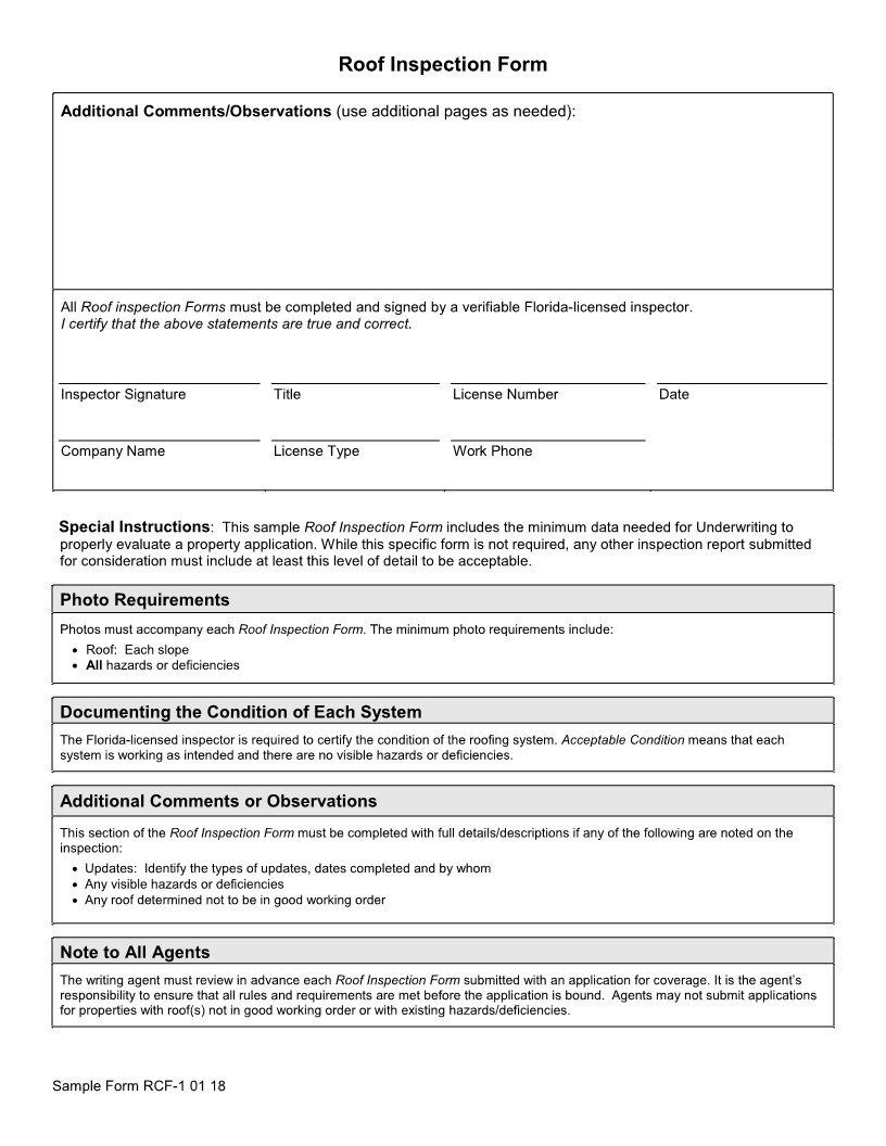**Consult with your insurance agent for current underwriting guidelines for each inspection.